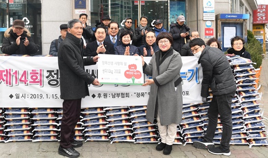 15일 오전 영등포제일 새마을금고에서 제14회 ‘정목 선생 사랑의 쌀 나누기 행사’가 개최됐다. 행사는 강세환 선생과 남부협회 필무회원들이 불우이웃을 위한 쌀 200포를 영등포제일새마을금고에 기부하기 위해 마련됐다.