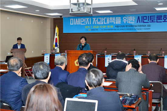 서울시의회 환경수자원위원회 최정순 의원은 25일(금) 서울시의회 제1대회의실에서 ‘한국에너지기후환경협의회’, ‘맑은하늘만들기 시민운동본부’ 와 함께 ‘미세먼지 저감대책을 위한 시민토론회’ 를 공동 개최했다.