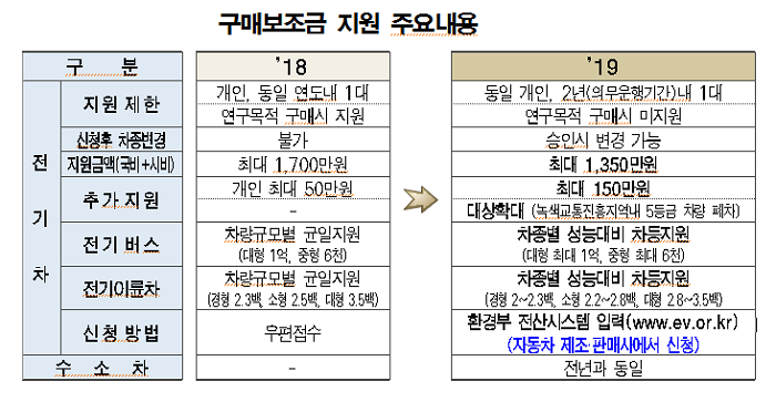 이와 관련해 서울시는 오는 11일(월)부터 「전기·수소차 민간 보급사업 1차 공고」를 시행한다. 1차 보급량은 전기차 4,964대(승용 3,620, 화물 444, 이륜 900), 수소차 58대다. 신청대상은 구매를 희망하는 개인, 기업, 법인, 단체, 공공기관이다. 서울시는 이번 1차 민간보급 공고에 이어 환경부 등 관계기관과 적극적으로 협의해 국비를 추가로 신청, 배정받아 예산 확보 후, 하반기에 2차 공고를 추진할 계획이다. 친환경 차 보급 촉진을 위해 지원되는 구매보조금은 차량 성능과 대기 환경 개선 효과에 따라 전기 승용차 기준 대당 1,206~1,350만 원, 전기 이륜차(경형) 200~230만 원을 차등 지원하고, 수소차는 3,500만 원(차량가액의 약 50%)을 정액 지원한다. 2019년 서울시 전기차 보급 지원정책의 주요 사항으로는 노후 경유차 등을 폐차하고 전기차로 전환 할 경우 대당 50만 원을, 녹색 교통진흥지역 거주자가 노후 경유차 등을 폐차하고 전기차로 전환할 경우 대당 최고 100만 원까지 추가 지원하는 것으로, 친환경 차 보급 촉진을 통한 도심 미세먼지 저감과 온실가스 감축에 총 역량을 집중하고 있다. 한편, 구매보조금 외에도 전기차는 최대 530만 원, 수소차는 660만 원의 세금감면, 공영주차장 주차료 50% 감면, 남산터널 혼잡통행료 100% 면제 등 다양한 혜택과 함께 전기차 충전요금 할인, 연료비 절감으로 전기‧수소차의 경제성이 높다. 황보연 서울시 기후환경본부장은 “최근 미세먼지에 대한 시민의 관심이 높아지면서 친환경차에 대한 수요가 크게 늘고 있다”라며 “서울의 대기 질 개선과 온실가스 감축을 위해 친환경차 보급을 확산하여 시민의 환경권을 실현하는 것은 물론 이용 시민 편의성을 높이기 위해 충전 인프라 확충에도 더욱 힘써 나가겠다”고 말했다.