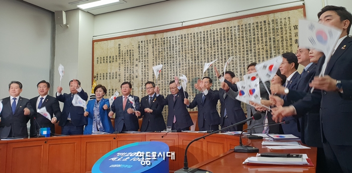 박광원 의원 “5.18 허위‧조작정보 특정인이 공장역할” 민주당은 25일 국회에서 열린 최고위원회의에 앞서 이해찬 대표와 독립선언서를 낭독하고 태극기를 흔들며 3.1운동 백주년을 기념했다.