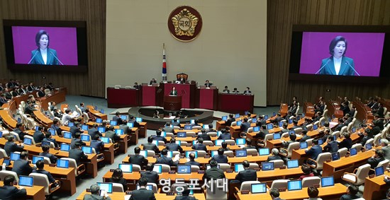 나경원 자유한국당 원내대표가 12일 국회 교섭단체 원내대표 연설을 통해 문재인 정부의 경제, 안보, 민생 등 현안을 일일이 열거하며 강하게 비판했다.
