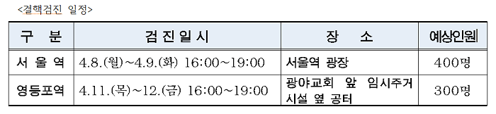 - 대한결핵협회(서울지부), 관할 보건소, 노숙인·쪽방 시설 등 19개 기관(시설) 참여 - 노숙인 700여 명과 쪽방 주민 1,300여 명 등 총 2,000여 명 검진 계획