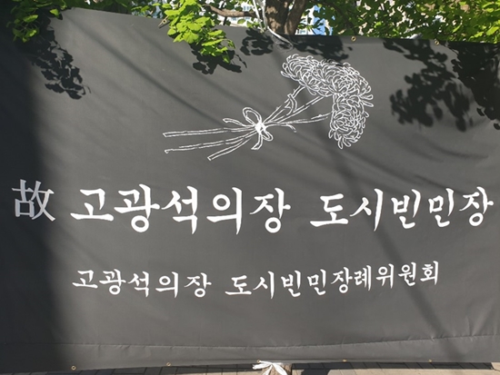 잠시 후 6시부터 빈소인 한림대학교 한강성심병원 장례식장 앞에서 故 고광석 의장의 추모제가 활동 영상과 함께 시작된다. 노동해도 가난에서 벗어나지 못하는 세상, 빈민과 민중 그리고 민주주의와 조국 통일을 위해 한평생을 살아온 “故 고광석” 의장의 추모제는 “반 빈민” 활동 영상, 사진전, 추모 음악, 유가족 대표인사, 분양 및 헌화 순으로 진행된다. 전국민주노동조합총연맹, 전국철거민연합, 민주노점상전국연합, 전국노점상총연합, 천주교도시빈민회, 기독교빈민선교협의회, 주거권실현을위한국민연합, 임대주택국민연합, 한국진보연대, 조국통일범민족연합, 빈철연, 민중공동행동(52개 단체) 연합단체, (사)더좋은정책연구원 등 총 53개 단체 관계자들이 참석한 가운데 엄숙하게 진행될 예정이다.