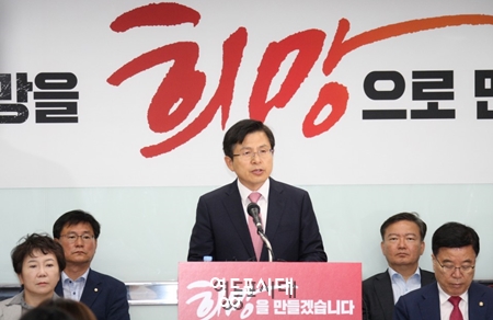 자유한국당 황교안 대표(오른쪽 사진)는 27일 오전 영등포 자유한국당 당사에서 기자회견을 열고 문재인 정부의 경제, 안보, 외교가 모두 어렵다고 주장하고 “1:1로 만나 민생현장의 절박한 현상을 들어주기 바란다”며 1:1 영수회담을 촉구했다.