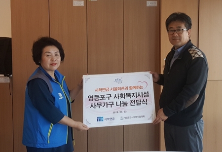 영등포구사회복지협의회(회장 정진원)는 사립학교교직원연금공단(이사장 이중흔) 서울회관과 함께 영등포구사회복지시설 사무 가구 나눔 사업을 진행했다.
