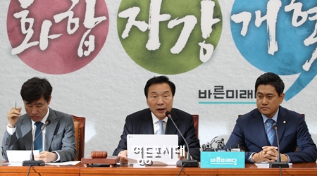 손학규 대표는 이어 “국회가 파행 한지 오늘로 55일째를 맞는다”고 지적하고 “자유한국당과 민주당의 반성과 사과”를 촉구했다. 손 대표는 자유한국당을 향해 “비상식적인 막말과 정치공세를 중단하고, 즉각 국회로 돌아와 대화하며 문제를 해결해야 한다”고 쓴소리를 쏟아냈다. 손학규 대표의 쓴소리는 민주당으로 이어졌다. 손 대표는 민주당을 향해 “국회의원 워크숍에서는 ‘돌아오라 자유한국당’ 이런 피켓이나 들고, 시위나 하는 것이 집권당의 태도인가?”라고 반문하고 “협상의 내용을 갖추고, 줄 것은 주고, 받을 것을 요구하는 것이 민주 정치이다”며 “민주당은 갈등과 대결의 정치를 조장하는 것을 중단하고, 대화와 협치의 태도를 가져야 할 것이다”고 강조했다. 오신환 원내대표 “국회 파행으로 인해서 국회가 제 역할을 하지 못하고 있다”며 “6월 임시국회 합의를 위한 교섭단체 원내대표 회담을 조건 없이 개최하자”고 이인영, 나경원 원내대표에게 공식적으로 제안했다. 지난 26일 정부가 추진하던 제3의 인터넷 은행 사업자 선정이 무산된 바 있다. 사업자 선정을 신청했던 키움뱅크와 토스뱅크가 각각 혁신성과 자본조달 능력 부족을 이유로 모두 탈락했다. 오신환 원내대표는 이와 관련해 “정부•여당이 문재인 정부의 재벌개혁 의지를 의심케 하는 황당한 주장을 하고 있다”며 “이번 사업자 선정 무산이 높은 진입장벽 때문이라며 대주주 적격성을 또다시 완화하고, 민간전문가로 구성된 외부 평가위원회의 권한을 축소하는 반(反) 개혁적인 정책을 추진하겠다는 것이다”고 비판했다. 지난해 국회는 경제 살리기에 동참하는 차원에서 은산분리 원칙 완화라는 비판을 감수하면서까지 비금융주력자의 대주주지분율을 34%까지 허용하는 인터넷 전문 은행법을 통과시켜주었다. 그 대신 최소한의 안전장치를 위해서 최근 5년 내의 공정거래법과 금융 관련법 위반, 탈세, 뇌물 등으로 벌금형 이상을 선고받은 기업들의 참여를 제한시킨 바 있다. 오 원내대표는 “그런데 정부 여당은 지금 이 기준을 또다시 완화하고, 사업자 선정 과정에서 민간전문가들의 평가 대신 정부의 입김을 강화하자는 어처구니없는 주장을 하고 있다”고 비판하고 “이는 재벌은행의 탄생과 제2의 론스타 사태를 부르는 위험천만한 발상이다”며 “지금 ‘인터넷 관치 재벌 먹튀 은행’을 만들자는 것인가?”라고 반문했다. 오 원내대표는 “그렇다면 신기술 ICT 사업자들의 참여를 유도하기 위해 규제 완화 방안을 강구하는 게 상식적인 방법이다”며 “은행을 만드는데 부적격 기업들에 문호를 활짝 열고, 정부 입맛대로 결정하겠다는 반(反) 개혁적인 발상을 당장 거두어드릴 것”을 촉구했다. 하태경 최고위원은 “지난 김관영 원내대표의 사퇴를 다룬 의원총회에서 당의 자강 선언을 했다. 타당과 연대도 안 하고 통합도 안 하겠다고 선언했다. 이것은 바른미래당 모두가 첫 번째로 공유한 가치가 됐다”며 “하지만 그 이후에 그 선언이 있었음에도 계속해서 그 선언에 대한 내부 공격이 있었는데 그런 부분은 이제 자제되어야 한다”고 강조했다. 하태경 최고위원은 “바른미래당이 공유하는 가치는 바로 합의제 민주주의다”고 강조하고 “타협과 절충을 이뤄내기 위한 가장 선제 조건으로 우리의 공동 가치를 확인하는 것은 그 현실적 의미가 아주 클 거라고 생각한다”고 밝혔다. 하 최고위원은 “화합은 이런 현실을 인정하고 이견을 인정하면서도 공동의 가치를 합의하는 것에서 시작할 수 있다고 생각한다”며 “합의제 민주주의를 만장일치 당론으로 확정하고 이를 당내에서 제도화하는 것에서부터 당의 갈등 해법이 시작됐으면 좋겠다”고 밝혔다.