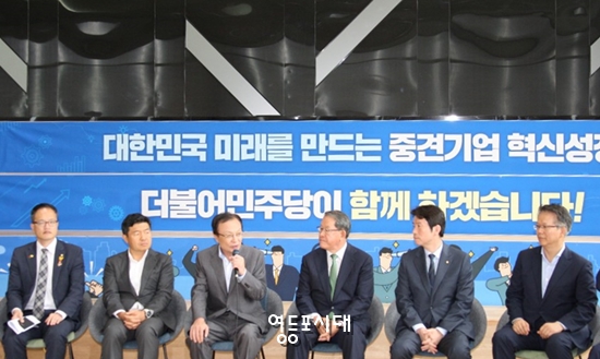 민주당은 7일 오전 서울 강서구 넥센중앙연구소에서 중견기업 현장 최고위원회의를 열고 중견기업의 중요성을 강조했다.