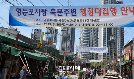 영등포구는 5월 30일과 31일 이틀에 걸쳐 영등포시장 북문 일대 점포 55곳에 대해 불법 설치물을 철거하고 적치물을 정비했다.
