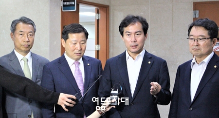 자유한국당 북한 선박 은폐조작 진상조사단(아래 조사단) 정종섭 이철규 김영우 백승주 정종섭 (왼쪽부터) 의원은 4일 오후 국회 정론관에서 기자회견을 열고 ▲정부 차원의 축소․은폐 의혹 ▲북한인 신분, 목적 ▲경계작전 실패 등을 지적하고 이에 국정조사가 불가피하다고 주장했다.
