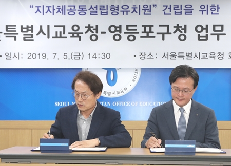 영등포구(구청장 채현일)는 7월 5일 서울시교육청(교육감 조희연)과 서울 최초로 “지자체 공동설립형 유치원” 건립을 위한 업무협약을 서울시교육청 본관에서 체결했다.