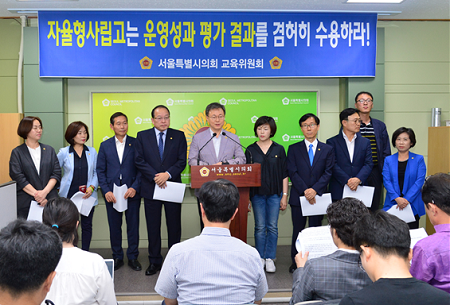 서울시의회 교육위원회는 10일 서울시의회 본관에서 기자회견을 열고 “자사고는 운영평가를 수용하고 교육 당국은 교육개혁을 위한 국가 차원의 문제로 해결할 것”을 강력히 촉구했다.