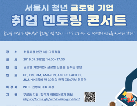 글로벌 인재로 발전하고 싶고, 글로벌 기업에 취업을 희망하는 청년들을 대상으로 국내 최대 글로벌 기업 현직자 재능기부 콘서트,「2019 서울 청년 글로벌 기업 취업 멘토링 콘서트」가 개최된다.