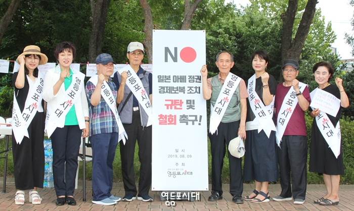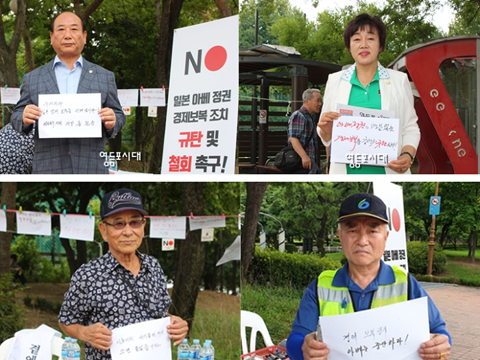 서명, “이번 기회에 일본의 버릇을 단단히 고쳐주어야 한다” 서명 거부, “문재인 대통령이 일본에 잘하면 된다” 영등포시대는 9일(금) 오후 1시부터 3시까지 영등포문화원 앞 영등포공원에서 아베 정권 경제보복 조치 규탄 및 철회를 촉구하는 서명운동을 펼쳤다.