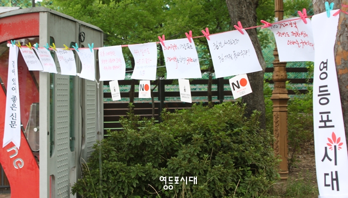 한 주민은 “그런 걸 왜 하느냐?”며 “문재인 대통령이 일본에 잘하면 된다”라면서 서명을 거부하기도 했다. 이날 영등포구의회 윤준용 의장과 오현숙 구의원이 현장을 찾아 서명과 함께 응원을 보냈다.