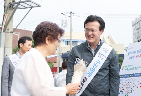 [영등포시대] 구민과 영등포시대 독자들에게 오늘 하루의 일상을 가감 없이 전해달라 [채현일 구청장] 어제 (16일) 저녁 11시가 조금 넘어서 잠자리에 들었다. 그리고 오늘 아침 4시 30분 정도에 일어나 평상시처럼 1시간 정도 책을 읽고 세 식구(아내와 딸)가 함께 아침을 먹었다. 7시 30분쯤 출근해 신문을 읽고, 보고 받고, 동장단 회의 등을 마치고 태풍 피해를 막기 위해 현장 점검을 했다. 이어 막바지에 접어든 영중로 개선 사업 현장을 방문해 진행 상황을 꼼꼼히 체크하고 우동으로 점심을 했다. 오후에는 이정옥 여성가족부 장관, 정부 관계자들과 함께 꿈 드림센터를 방문해 관계자들과 간담회를 열고 시설운영과 관계자들의 애로 사항 등을 청취했다. 마지막으로 그린푸드존 학부모 식품안전 지킴이 간담회 참석, 어린이 기호식품 판매업소 점검 등을 통해 안전한 먹거리로 아이들이 건강하게 자라는 탁 트인 영등포를 구민과 함께 만들어가겠다는 다짐을 했다. 참고로 노점상으로 인해 구민의 보행 안전이 위협받던 영중로를 쾌적하고 탁 트인 거리로 탈바꿈시켜 25일 박원순 시장님을 모시고 준공식을 개최한다. (영중로 환경 개선 사업은 구민들이 모두 잘했다고 칭찬하며 좋아한다.) [영등포시대] 작년 7월 취임 구정 운영에 대한 소회는? [채현일 구청장] 취임 이후 1년 3개월 동안 쉼 없이 달려왔다. 모두에 밝혔듯이 초심을 잃지 않고 구민의 눈높이에 맞춰 상식과 원칙에 따라서 소통하며 구정을 운영해 왔다. 앞으로도 초심을 종심 (끝 맘)까지 그대로 유지하며 구민의 눈높이에 맞는 행정을 펼쳐나가겠다. 민선 구청장은 구민으로부터 임기 동안 권한을 위임받았다는 것을 늘 마음에 새기고 있다. [영등포시대] 취임 후 구정 운영에 가장 어려웠던 점은? [채현일 구청장] 늘 미래 세대에게 물려줄 영등포를 그리며 행정을 펼치고 있다. 그러나 구민 100%를 만족시킬 수 없다는 것을 잘 알고 있다. 꼭 해야 하는 사업을 구민이 반대할 때 가장 마음이 아프다. 청소, 교통, 주차문제, 영중로 개선 사업 등 어느 것 하나 어렵지 않은 사업은 없다. 다수를 위한 정책, 구민을 위한 행정을 펼쳐나가겠다. 특히 청탁문화 근절을 위해 최선을 다해왔다. 앞으로도 청탁문화가 발을 붙이지 못하도록 하겠다. [영등포시대] 앞으로 펼칠 구민을 위한 행정 한 가지만 소개해 달라. [채현일 구청장] 우리 영등포는 전통시장이 차지하는 비중이 크다. 전통시장 활성화를 위해 전통시장 내 고객 동선을 확보하는데 전력을 기울일 방침이다. [영등포시대] 취임 후 특별히 노력을 기울인 분야와 그 성과는? [채현일 구청장] 우리 영등포는 서남권의 종가이자 중심이다. 그 위상을 찾는 첫 번째 변화가 영등포역 주변 반경 1km 이내에서 시작됐다. 바로 25일 개장식을 끝으로 일단락 짓는 영중로 개선 사업과 (노점상 철거) 영등포시장 북문 일대 불법 설치물을 철거하고 적치물을 정비해 보행로를 구민에게 돌려드린 것 등 많은 성과가 있었다. 이 밖에도 ‘책 읽는 영등포’ 조성, 독서 진흥 사업, 사회적경제 기업 적극적으로 육성, 영등포 스마트메디컬특구, 학교 주변 통학로의 교통안전 시설물 정비, 유휴지(자투리땅) 주차장으로 전환을 통한 탁 트인 주차행정, 청년 활력 공간 무중력 지대 오픈, 취·창업 맞춤형 정보화 교육을 제공하는 창업 스마트교육장 개설 등 많은 성과가 있었다. 특히 민생현안 토론회를 개최하고 ‘찾아가는 영등포1번가 게릴라 거리 소통’을 통해 구민의 직접민주주의 실현을 구정운영에 반영했다. 앞으로 영등포의 지도를 바꿔놓을 영등포 고가철거 등 굵직굵직한 사업들이 진행될 예정이다.