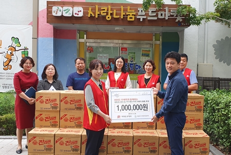 여의도우체국(국장 김상우)은 26일 영등포사랑나눔푸드뱅크·마켓에 후원품을 전달했다. 여의도우체국 이은아 지원과장과 관계가 3명은 이날 영등포사랑나눔푸드뱅크·마켓을 방문해 라면 42박스(100만원 상당)를 전달했다.