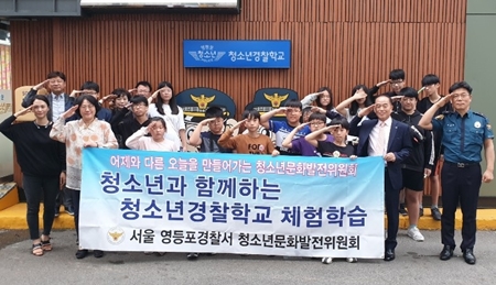 영등포경찰서 청소년문화발전위원회(위원장 박영준)는 10월 1일 오후 청소년 경찰학교에서 편모•편부가정 청소년을 위한 학교폭력 예방 청소년 경찰학교 체험 교육을 시행했다.