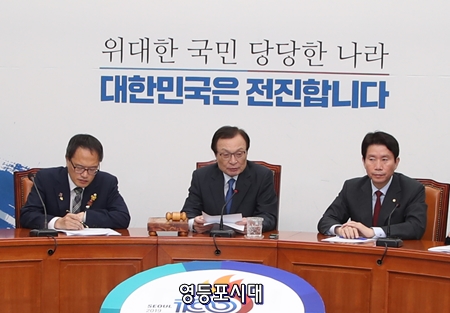 이해찬 대표는 마무리 발언에서도 “태풍피해에 관해서 조금 더 구체적으로 말하는 것이 좋을 것 같다”며 태풍으로 피해를 본 농가들이 “제일 절실하게 요청하는 게 '신속한 지원'이었고, '특별재난지역으로 선포해 달라'는 요구였다”면서 “이번 주 내로 1차 특별재난지역 선포를 발표하는 것이 좋을 것 같다”고 밝혔다. 이 대표는 “정부에 신속한 지원을 다시 한번 강력하게 요청하겠다”고 덧붙였다. 이인영 원내대표 주말에 열린 서초동 촛불집회와 관련 “완벽한 촛불 시민혁명의 부활이었다”며 “한 사람 한 사람이 자발적으로 모였고 시민들은 자율과 연대의 정신으로 세계가 부러워할 높은 민주 의식을 다시 보여주었다”고 강조했다. 이 원내대표는 “주권자의 이름으로 단호하게 검찰개혁을 거듭 명령했다”며 “며칠 전 자유한국당의 광화문 집회와 극명하게 대비되는 집회였다”고 주장했다. 이인영 원내대표는 “지금 자유한국당이 할 일은 관제 집회니 계엄령이니 막말을 일삼을 일이 아니라 국민의 명령인 검찰개혁을 집행하는 일이다”고 강조하고 “올해 안에 국회의원 자녀 전수 조사를 실현하기 위해 이달 안에 특별법을 통과시키자는 민주당의 제안에 응답하기 바란다”며 자유한국당을 압박했다. 이 원내대표는 “검찰에도 거듭 요구한다”며 “피의사실을 유포하고 공무상 비밀을 누설한 정치검사가 있다면 반드시 찾아내 책임을 물으시기 바란다. 강력한 검찰개혁에 착수하겠다”고 강조했다.