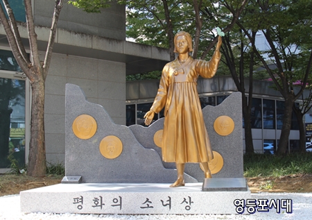 일본군‘위안부’ 문제 해결을 위한 영등포 평화의 소녀상 건립 시민추진위원회(위원장 배기남)는 9일(수) 오전 영등포구 출신 정치인과 학생, 시•구민 관계자 등이 참석한 가운데 ‘영등포 평화의 소녀상’ 제막식을 열고 “일본군 ‘위안부’ 피해자로 사는 삶을 극복하고 인권•평화운동가로 우뚝 선 할머니의 뜻을 기렸다. 이날 제막식에는 영등포 평화의 소녀상 건립 시민추진위원회 공동대표와 채현일 영등포구청장, 윤준용 영등포구의회 의장, 김영주, 신경민 국회의원, 김민석 민주당 포용국가비전위원 위원장, 바른미래당 정찬택 지역위원장, 정의당 정재민 지역위원장 등 180여 명이 참석했다.