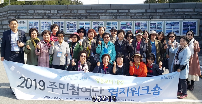 영등포구는 16일 주민참여단 40여 명을 대상으로 ‘2019 주민참여단 협치 워크숍’을 개최했다. 이날 경기도 파주시 홍원연수원에서 열린 협치 워크숍은 말하는 사람들의 김재성 강사의 주민협동심∙협치 실천력 강화를 위한 협치 교육이 진행됐다. 이어 협치 레크레이션을 활용한 협동·소통기술 습득과 벽초지 수목원 투어를 통한 자연 속 힐링 타임을 가졌다.