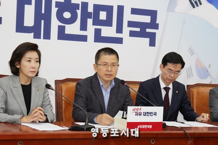황교안 대표는 “우리 경제가 그야말로 벼랑 끝으로 추락하고 있으며 1%대 성장률 쇼크가 현실로 다가오고 있다”고 주장하고 자유한국당이 제시한 “경제대안, ‘민부론’으로의 경제대전환만이 경제위기를 극복할 유일한 대안이다”며 이같이 주장했다. 황 대표는 문재인 정부의 “소득주도성장 정책이 오히려 국민을 더 가난하게 만들고 우리경제의 펀더멘탈까지 붕괴시키고 있다”며 “중소기업, 소상공인을 살려낼 가장 확실한 방법은 민부론 이라며 민부론으로 경제성장 대 전환을 이룰 때 까지 국민과 함께 강력한 경제투쟁을 멈추지 않겠다”고 밝혔다. 나경원 원내대표는 정의당 심상정 대표가 의석수를 늘리고 의원 세비는 동결하자는 안을 내 놓은 것에 대해 “심상정 정의당 대표가 밥그릇 본색을 드러내고 있다”고 비판하고 “정치개혁, 선거개혁 핑계였다”며 “결국 속내는 의석수 늘리기 욕심이었다”고 비판했다. 나경원 원내대표는 “여당은 의원 수 확대 폭탄을 던져놓고 수습하고 정의당은 불을 지피고 있다”며 “여론몰이용 정치공작이 또 시작된 것이다”고 주장하고 “기본적으로 세비동결약속자체를 국민은 믿지 않는다”며 “쏟아낼 각종 규제와 법안은 사회적 비용이다”고 강조했다. 나 원내대표는 의원수를 늘리면 늘어날 국회운영비용에 대해 “선거비용은 누구의 몫인가”라고 되묻고 “혈세로 충당해야 하며 지금도 너무 많다. 줄이라는 것이 국민의 목소리다”며 “그래서자유한국당은 10% 축소를 말씀드린 것이다”고 밝혔다.