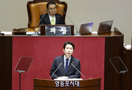 민주당 이인영 원내대표는 28일 오전 국회에서 진행한 제371회 국회(정기회) 제7차 본회의 교섭단체 대표연설에서 '공정사회'를 위한 개혁과 '공존경제'를 향한 전진을 강조했다.