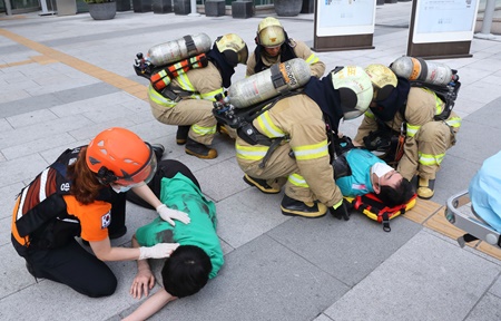 ‘여의도역 내부 테러로 인한 대형화재 상황’ 실전처럼 시행