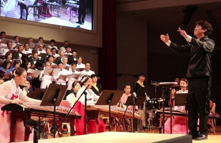 세계 전통오케스트라 ‘평화’ 지휘자 이춘승과 함께 무대에