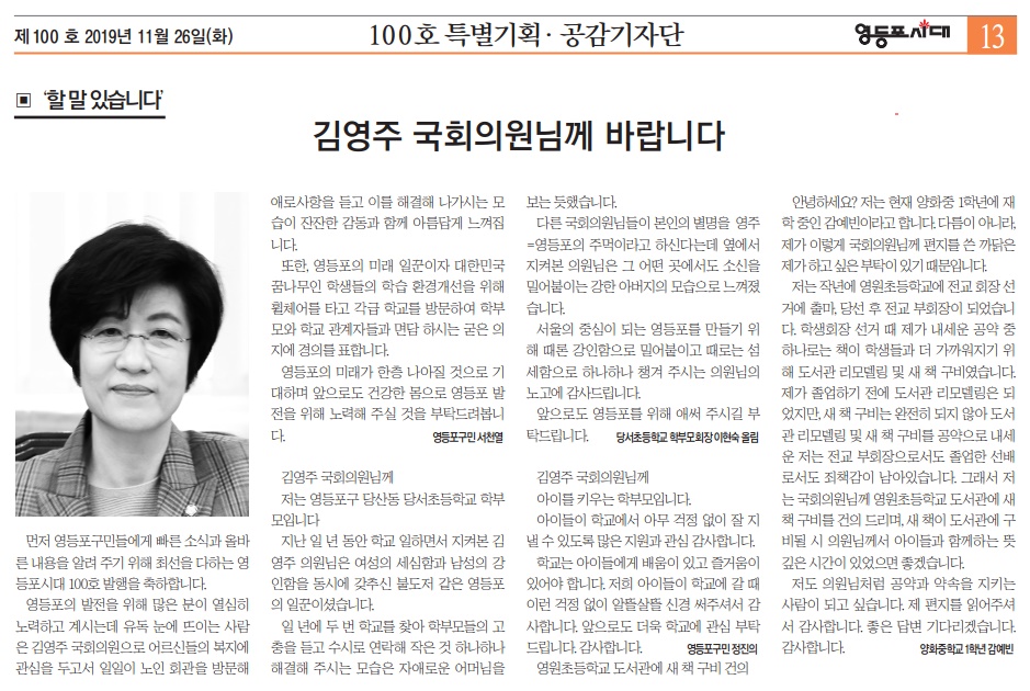 곁에 있어 좋은 신문 영등포시대는 주민리더(주민자치 위원장‧전통시장 상