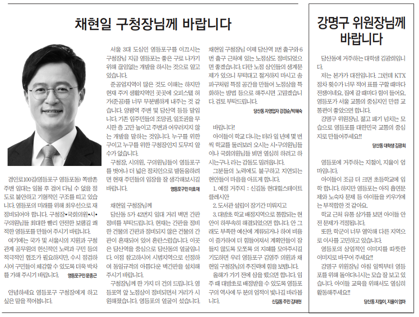 채현일 구청장, 김영주 국회의원, 강명구 당협위원장 님 할 말 있습니다!