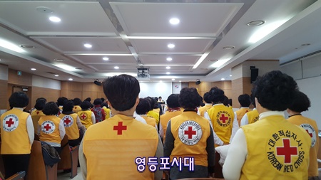 대한적십자봉사회 영등포구 지구 협의에는 6일 오후 문래동 에이스하이테크시티에서 ‘2019년 적십자 가족 한마음 행사를 개최했다. 시상식과 함께 진행된 이 날 행사는 유공 봉사원과 적십자 인도주의 사업에 힘써 준 적십자 가족들을 초대해 올 한해 적십자 인도주의 활동을 돌아보는 시간으로 진행됐다. 이날 회원 유공장(금장)은 대림성모병원, (재)한국우편사업진흥원, 롯데마트 양평점이 표창을 받았다. 이어 신한 신용정보주식회사, 한국전력공사 영등포지사 지구협의회와 하강진 씨가 은장을, 사회봉사 유공(김경희), 서울시장(전선분), 영등포구청장(이명숙, 김옥선) 영등포구의회 의장(한정옥, 김효숙), 으뜸 봉사회(당산1동 봉사회) 등이 표창장을 받았다.