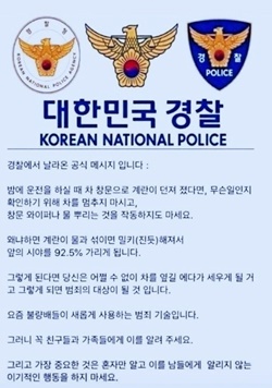 “경찰서에서 날아온 공식 메시지입니다”라는 글로 시작해 “요즘 불량배들이 요즘 사용하는 범죄기술이라며 운전자들의 각별한 주의를 당부하는 장문의 문자가 주의를 환기하며 관심을 끌고 있다.