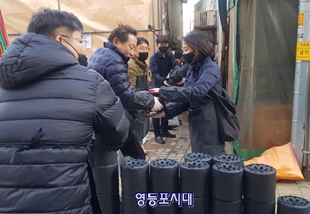 한국교직원공제회(이사장 차성수) 임직원 40여 명은 11일 오후 영등포청과시장 인근에 사는 어려운 이웃에게 따뜻한 마음을 담아 사랑의 연탄을 배달했다.