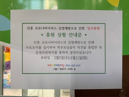 임시 휴원(권고) 대상 기관은 관내 어린이집 248개소, 맘든든센터 4개소, 장난감도서관 3개소, 열린육아방 5개소, 시간제 보육 기관 2개소 등 총 262개소다. 영등포구는 2월 5일부터 11일까지 7일 동안 임시 휴원(권고) 기간을 가진 후 감염증 확산 추이를 모니터링해 휴원 연장 혹은 휴원 명령 여부를 결정할 계획이다. 구는 맞벌이 부모 등 가정 내 돌봄을 받기 어려운 영유아의 경우 해당 어린이집에서 당번 교사가 돌보도록 하여 맞벌이 부모의 불편함을 최소화하고, 휴원 기간에는 ‘출석 인정 특례’를 적용하여 보육료를 지원하는 등 보육 공백이 생기지 않도록 심혈을 기울이고 있다. 구는 향후 어린이집과 복지시설 내 감염증 발생 및 기타 특이사항, 휴관․휴원 시 관련 민원사항을 연일 파악해 보육 공백에 신속히 대처하고, 바이러스 확산 방지를 위한, 필요 물품 수요조사를 통해 지속적인 보급에 나설 예정이다. 채현일 영등포구청장은 “부모가 안심하고 자녀를 양육할 수 있는 보육환경 조성에 최선을 다하겠다”고 전했다.