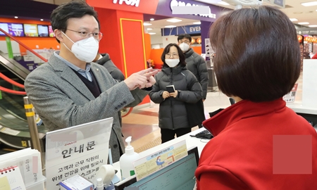 채현일 영등포구청장은 7일 오후 신종 코로나바이러스 감염증 확산을 방지하기 위해 대형마트를 방문해 관계자의 애로사항을 청취하고 “많은 사람이 방문하는 장소임을 고려해 소독과 방역, 방역용품 비치 등을 통해 주민 건강과 안전을 챙겨달라”고 당부했다.