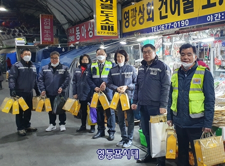 영등포구 자율방범연합회(회장 서천열)는 21일 오후 코로나19로 인해 피해를 보고 있는 영등포전통시장을 찾아 장보기를 진행했다.