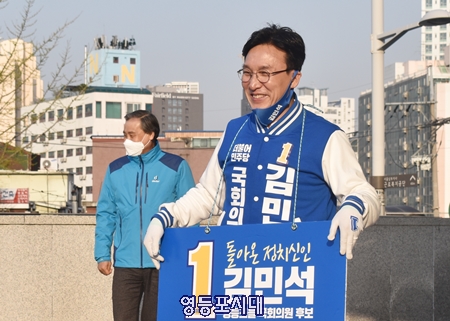 다섯 명의 후보가 영등포을에 출마해 저마다 여의도 입성을 노리며 유세전에 돌입한 이 날 아침 김민석 후보와 박용찬 후보는 선거운동원들과 함께 신길역 앞에서 출근길에 오른 유권자를 상대로 선거운동을 시작했다. 유세 도중 사진을 함께 찍으며 서로를 격려하고 선의의 경쟁을 다짐한 두 후보지만 유권자에게 지지를 호소하며 득표 활동을 하는 데는 한 치의 양보도 존재하지 않았다.