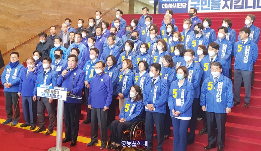 이낙연 “일 잘하는 사람 뽑는 선거 돼야!” 강조 더불어민주당은 4월 2일 오후 국회 로텐더홀 입구에서 제21대 총선 출정식을 열고 “4·15 총선은 국난극복과 국민 고통 완화를 위해 일하는 사람을 뽑는 선거가 되어야 한다”고 강조했다.