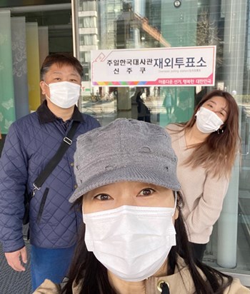 일본 신주쿠에 거주하는 김난영 가족이 신주쿠 주일한국대사관에 설치된 재외투표소에서 4일(토) 오후 투표를 마친 뒤 투표 인증샷을 보내왔다.