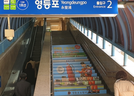 영등포소방서(서장 김명호)가 지난달 29일 주택용 소방시설 설치 촉진을 위해 영등포역 계단에 래핑 홍보를 시행한 것으로 뒤늦게 확인됐다. ‘주택용 소방시설’은 소화기와 단독경보형 감지기를 말한다. 소화기는 세대ㆍ층별 1개씩 비치하고 단독경보형 감지기는 구획된 실(침실∙거실∙주방 등)마다 1개씩 천장에 부착하면 된다. 김명호 서장은 “주택용 소방시설은 초기에 화재를 발견할 수 있어 인명·재산 피해 경감에 매우 큰 효과를 낸다”라고 강조하고 “꼭 주택용 소방시설을 설치해 가정의 안전을 지키자”라며 주택용 소방시설 설치를 당부했다.