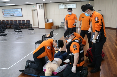 영등포소방서는 그 첫 번째 교육으로 11일 오후 4층 강당에서 현장대응단 펌뷸런스 탑승 대원을 대상으로 CPR 교육을 시행했다고 12일 오전 밝혔다. 이날 시행한 교육은 펌뷸런스의 효율적 운영을 통해 심정지 환자 등 중증 응급환자의 생존율을 높이고 구급대의 구급활동을 신속하고 효과적으로 지원하기 위해 마련됐다. 펌뷸런스(Pumbulance)는 소방펌프차(Pump)와 구급차(Ambulace)를 합성한 구급차 출동으로 공백 발생 시 구급차가 오기 전까지 먼저 출동해 응급환자에게 응급의료서비스를 제공하고 구급대의 현장 활동을 지원하는 역할을 한다. 주요 내용은 ▲전형적인 CPR 상황에서 특수 상황까지 고려한 훈련 ▲팀 CPR 매뉴얼 숙지 ▲역할 분담 임무 교대 방법 ▲AED(자동제세동기) 사용법 등이다. 주경일 구급 팀장은 “신속하고 효율적인 구급활동 지원을 위해 펌뷸런스 시스템의 장비 조작과 심폐소생술 교육ㆍ훈련을 시행했다”며 “반복 훈련으로 응급 현장에서 시민의 생명보호에 최선을 다하겠다”고 말했다.