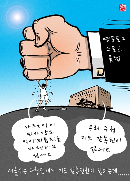 “영등포구스포츠클럽의 직원 복무 관련 사항에 대한 영등포구청의 조사위원회 구성 및 조사 요청에 관하여는 영등포구청에서는 사단법인 단체의 직원 복무와 관련한 지도 및 감독 권한이 없음을 알려 드리며....”