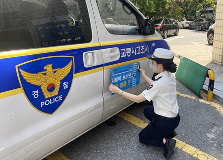 영등포경찰서는 교통사고 예방과 시민들의 교통 법규준수율 향상을 위해 교통과에서 자체 제작한 ‘사람이 보이면 일단 멈춤’ 차량용 자석 플래카드를 활용하여 올림픽대로․서부간선도로 등 자동차전용도로를 다니는 교통순찰차, 영등포 곳곳을 누비는 지구대․파출소 순찰차에 부착, 생활 속 교통안전 홍보를 펼치고 있다. 영등포경찰서 관계자는 “이번 홍보는 코로나19 감염예방으로 시민을 직접 접촉하지 않고 시민들의 교통안전 의식을 높이기 위해 추진되고 있다”며 “교통사고 예방을 위한 홍보 활동을 꾸준히 이어나가 교통법규 의식이 높은 안전한 영등포구를 만들겠다”고 말했다.