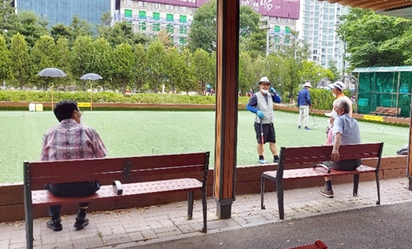 아침나절에 열리는 노인 양반들의 게이트볼 경기 그늘에 앉아 목소리 크게 훈수도 하고 때로는 구경꾼도 좋다.