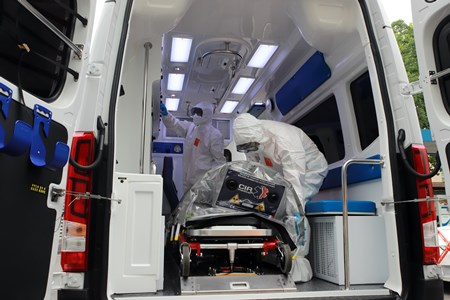 서울시 소방재난본부는 8일, 감염병에 신속히 대응하기 위해 음압구급차 동대문소방서(2권역), 구로소방서(3권역)에 각각 배치완료하고 운영에 들어갔다.”라고 밝혔다.