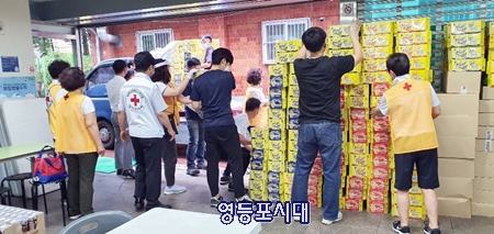 대한적십자사 영등포지구협의회(회장 홍인식) 10일(금) 오전 ‘시원한 여름나기 행사’로 영등포 쪽방촌 상담소에 라면과 방충제, 햇반, 생수를 전달했다.
