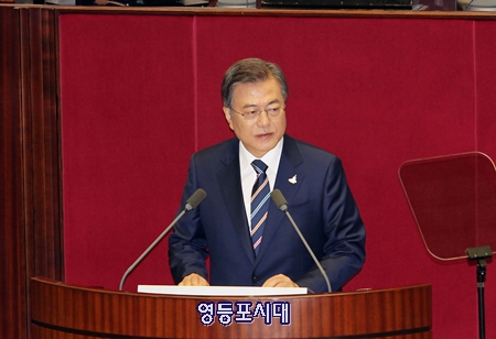 문재인 대통령이 16일 오후 국회에서 열린 제21대 국회 개원식 축하 연설에서 “국회의사당은 ‘함께 잘사는 나라’로 가기 위해 매일매일 새롭게 태어나야 하는 곳이며, 한순간도 멈출 수 없는 대한민국의 엔진이다”며 “국회의장과 부의장의 경륜과 패기, 원숙함과 신선함, 토론과 타협이 조화를 이루는 국회의사당을 국민과 함께 기대한다”고 밝혔다.