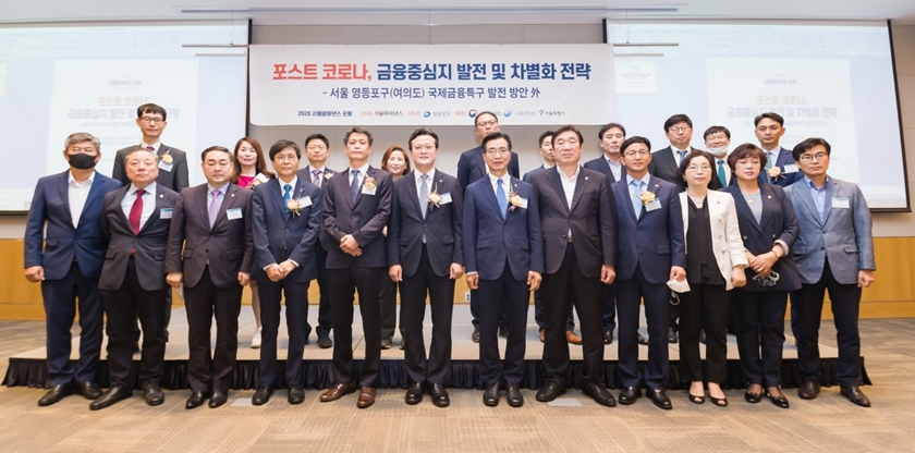 영등포구(구청장 채현일)는 23일(목) 여의도 전경련 콘퍼런스센터에서 여의도 금융 특구의 경쟁력 강화를 위한 「영등포구 국제금융 콘퍼런스」를 개최하고 포스트 코로나 시대를 대비한 여의도 금융 특구의 경쟁력 강화와 금융산업의 발전 방안을 논의했다.