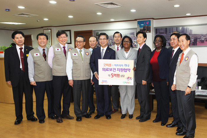 국제구호개발 NGO 굿피플(회장 김창명)이 지난 1월 13일(일) 여의도 굿피플 본부에서 ‘굿피플-아프리카 가나 의료보건 지원 협약식’을 가졌다.