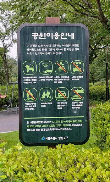 영등포공원 공원이용 안내판에는